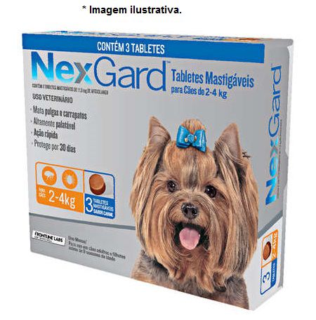 Antipulgas e Carrapatos NexGard 11,3 mg para Cães de 2 a 4 Kg Combo : É um tablete mastigável comprovadamente seguro para cães de qualquer raça e conta com uma linha completa para atender diferentes portes e pesos. Tem um rápido início de ação e atinge 100% de eficácia em 8 horas para pulgas. Pode ser administrado em cães adultos e filhotes acima de 2 kg e a partir de oito semanas de vida. Os tabletes NexGard foram pensados para evitar a dificuldade usual na administração de remédios a animais, apresentando sabor agradável que os cães adoram. Administre o mensalmente. A solução na medida contra pulgas e carrapatos.(com 03 unidades).