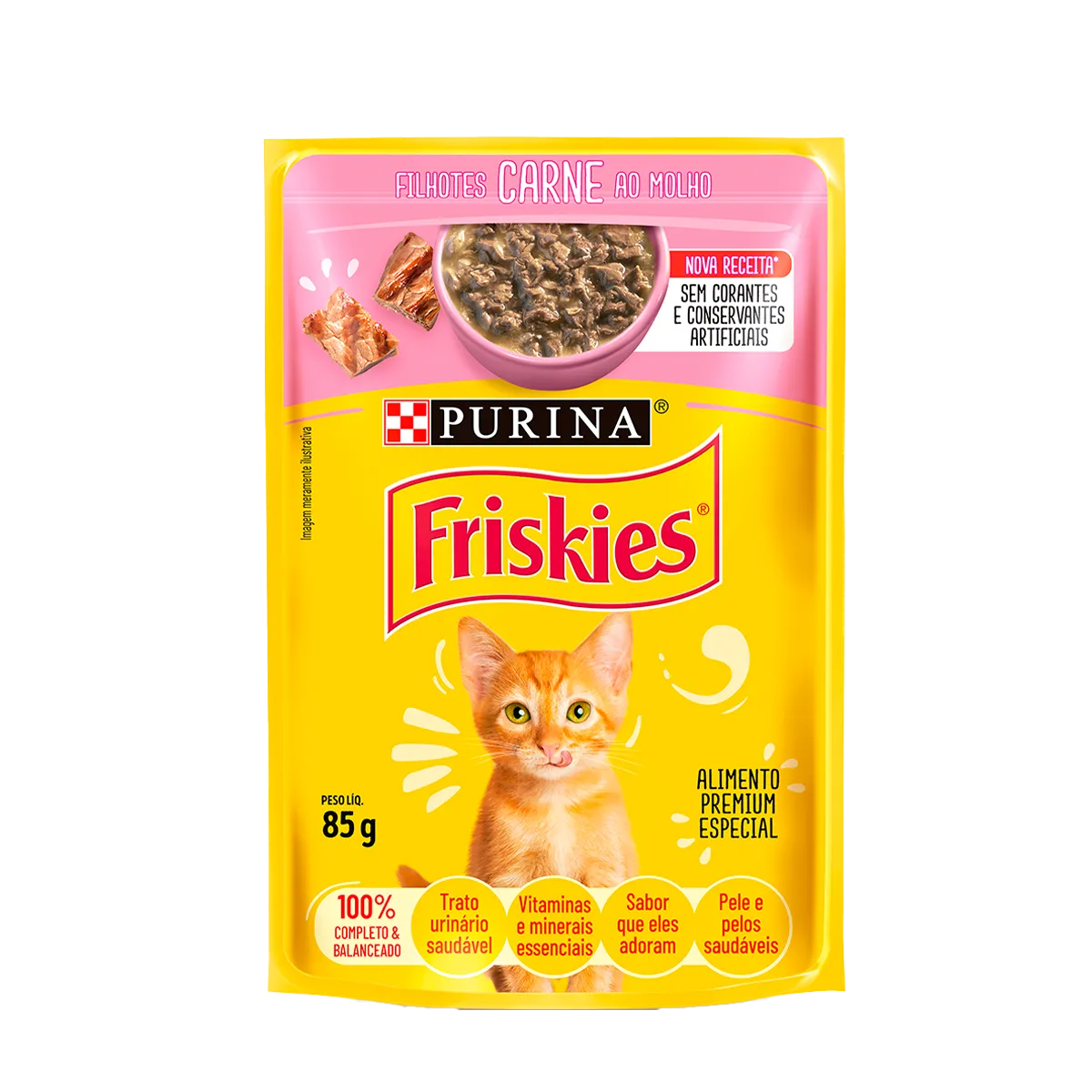 Ração Úmida Friskies Sachê Carne ao Molho para Gatos Filhotes é um alimento completo completo e balanceado destinado a gatos filhotes de 1 a 12 meses e a fêmeas lactantes ou gestantes. Mix de sabores e texturas deliciosamente maravilhoso. Aquele carinho todo especial que seu pet merece!