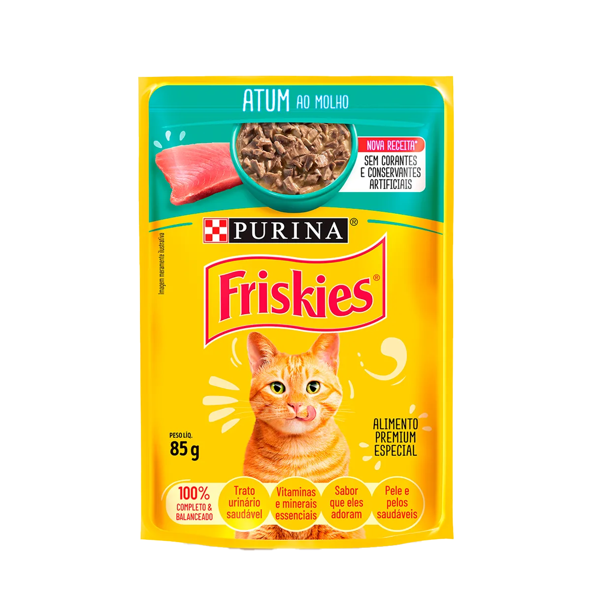 A Ração Úmida Friskies Sachê para Gatos Adultos Atum ao Molho é um alimento úmido completo e balanceado destinado a gatos adultos. O produto é pronto para o consumo. Cada embalagem de 85g contém uma deliciosa refeição que deve ser consumida até 48h depois de aberta.
