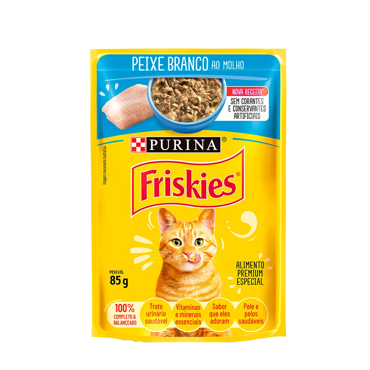 A Ração Úmida Friskies Sachê para Gatos Adultos Peixe ao Molho é um alimento úmido completo e balanceado destinado a gatos adultos. O produto é pronto para o consumo. Cada embalagem de 85g contém uma deliciosa refeição que deve ser consumida até 48h depois de aberta.